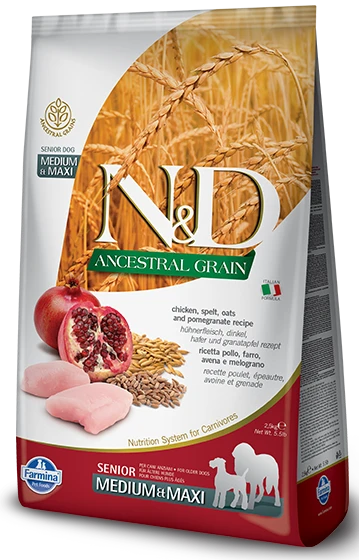 Farmina N&D Ancestral Grain Canine Senior Medium&Maxi Chicken&Pomegranate 12kg – Description du produit.