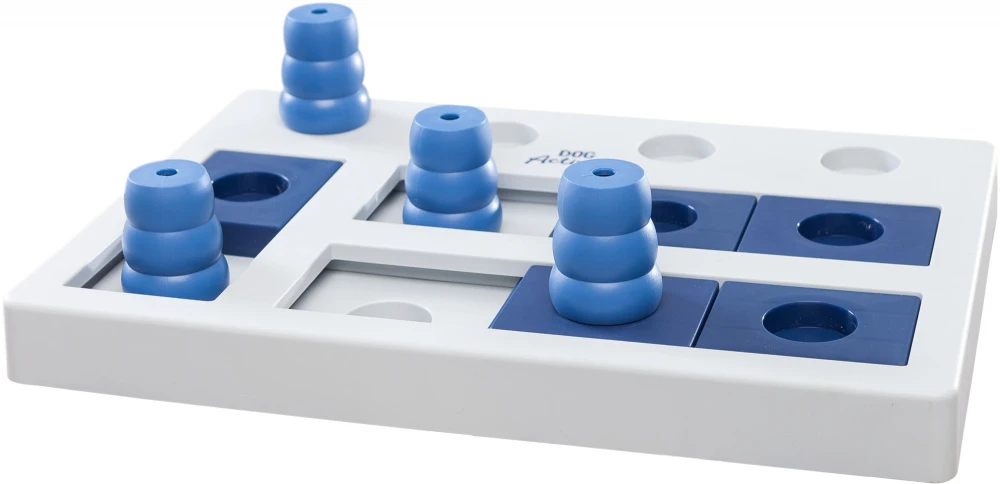 Le jeu d’Ă©checs consiste en un « plateau » avec de petites cavitĂ©s et des pions en plastique. Vous y cachez de petites friandises que votre chien essaie de sentir. Après quelques essais, votre animal apprendra Ă ramasser les pions et Ă ouvrir les tiroirs avec son museau ou sa patte pour obtenir son prix. Les Ă©checs sont un jeu stimulant pour les chiens de tous âges. Il s’agit de l’Ă©tape suivante d’un jeu de stratĂ©gie et devrait ĂŞtre utilisĂ© après l’entraĂ®nement avec le jeu « Solitaire ». Il est protĂ©gĂ© contre le glissement par des pieds en caoutchouc.